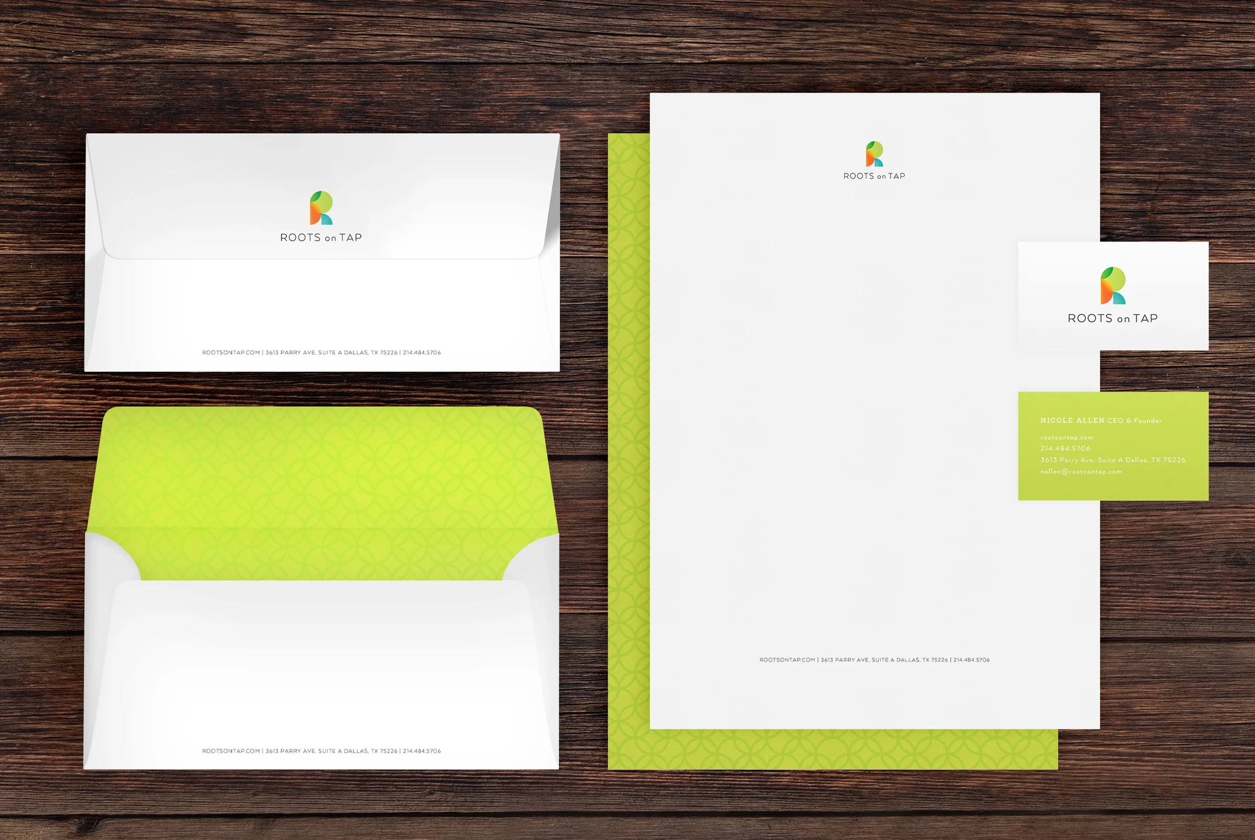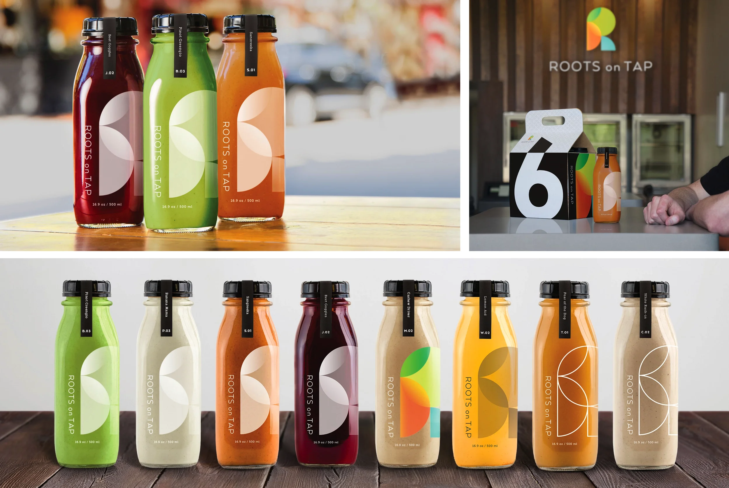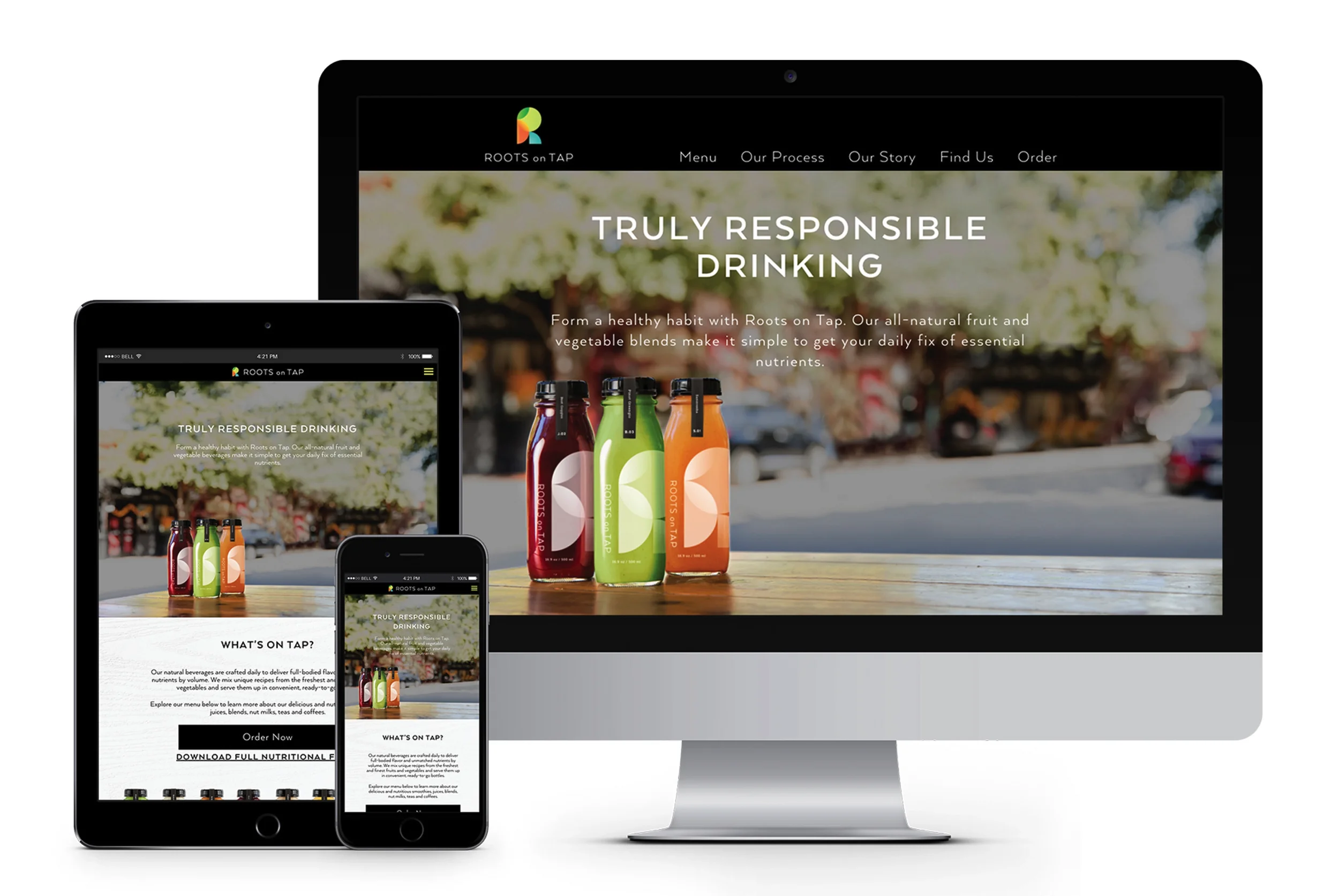 When a Dallas juice and smoothie guru decided to open her first storefront, my team was tasked with bringing her brand to life from the ground up. We started with a new name—Roots on Tap—and an image centered on a healthier cocktail alternative for “Truly Responsible Drinking.” From there, we set to work creating a cohesive brand platform to bring her products to market.